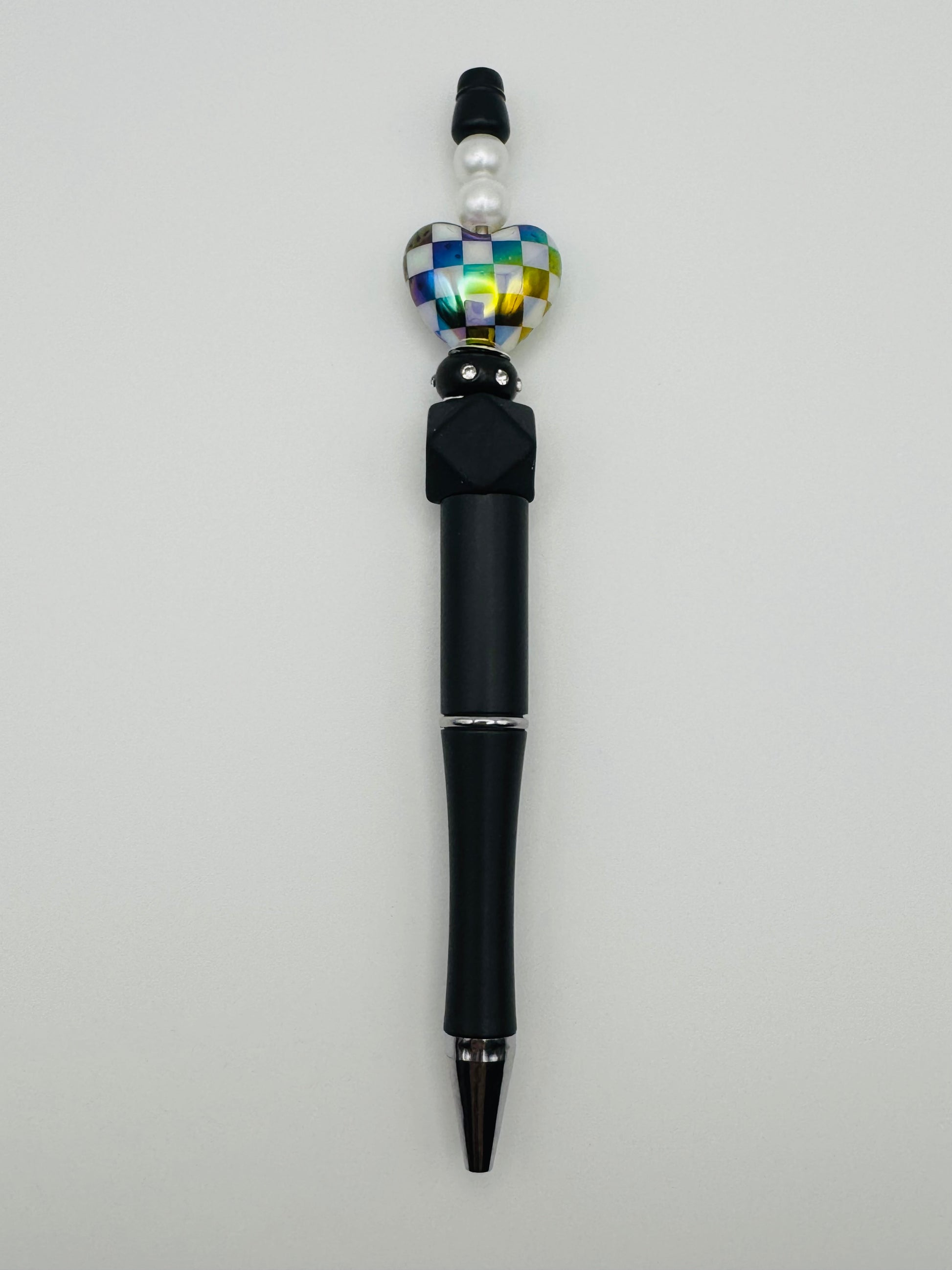 Black & White Checkered Heart Pen